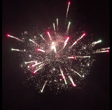 25-mm-Himmelsraketenfeuerwerk mit großen Explosionseffekten: rotgrüne Welle mit Knistern.